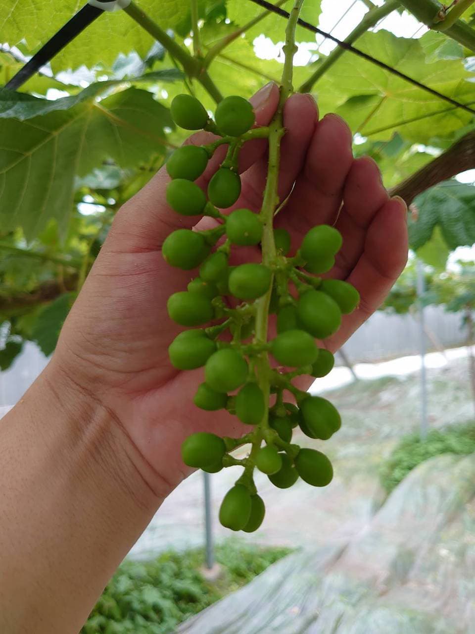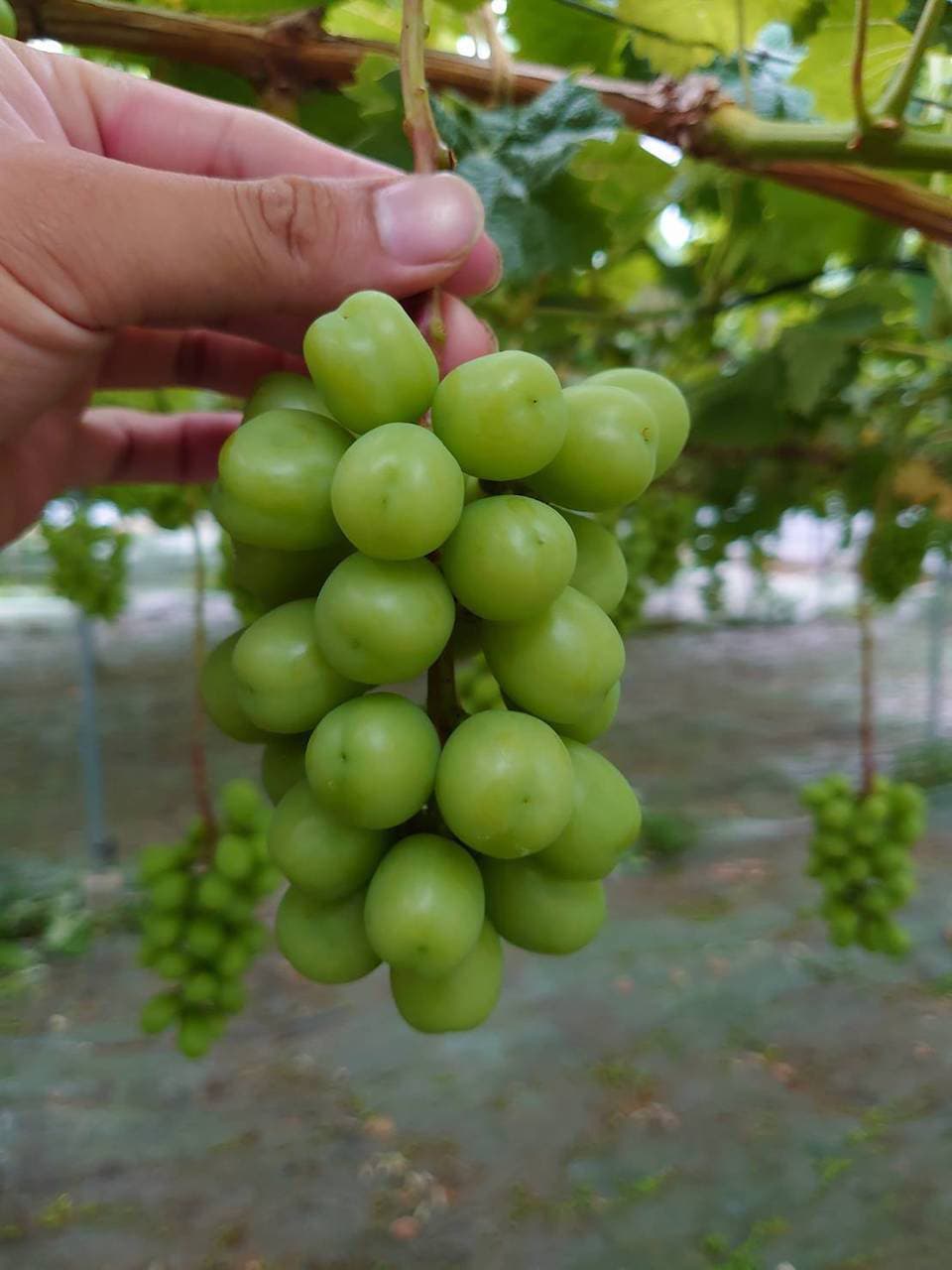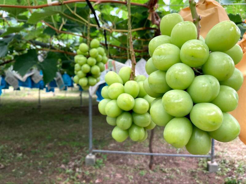 当園では、農薬と肥料をなるべく抑えて、葉の枚数や房数の管理を徹底して、1粒1粒の大きさにこだわり、甘さも引きだしています。