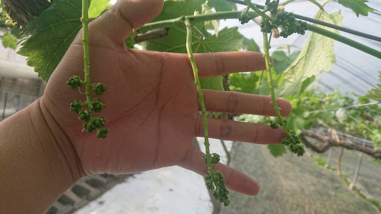それらの問題を防ぐため、1房で30粒程度に間引く「摘粒」(てきりゅう)を行い、1粒の重さを20g前後にしていきます。